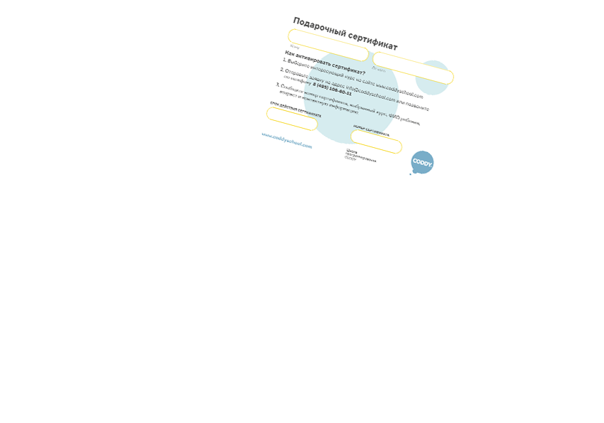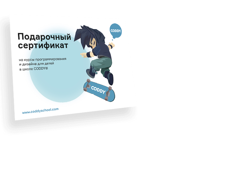 Школа программирования CODDY предлагает вам подарочные сертификаты на компьютерные курсы для детей от 4 до 16.